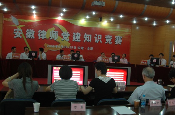 应安徽省律师协会关于举办“七一”党建知识竞赛的通知,本所党支部积极响应上级党委号召,组建了以本所执行主任赵勇律师为领队,以吕汶、胡永生、蒋晓磊为队员的参赛队伍,参加了该项赛事。本次赛事参赛队伍共20支,参赛人员近百名,绝大部分是由省内各个地区的律师协会和律师事务所选派优秀代表组成的地区代表队,而本所则是以一所之力组建队伍参加比赛。比赛分为三个环节:知识竞赛、演讲比赛和才艺比赛,历时两天。本所参赛人员在比赛前积极备战,在比赛中发挥出色,赛出了风格,赛出了信心,最终取得了第二名的好成绩,蒋晓磊被评为优秀选手。赛后,所领导组织全所人员进行了聚餐联谊活动。