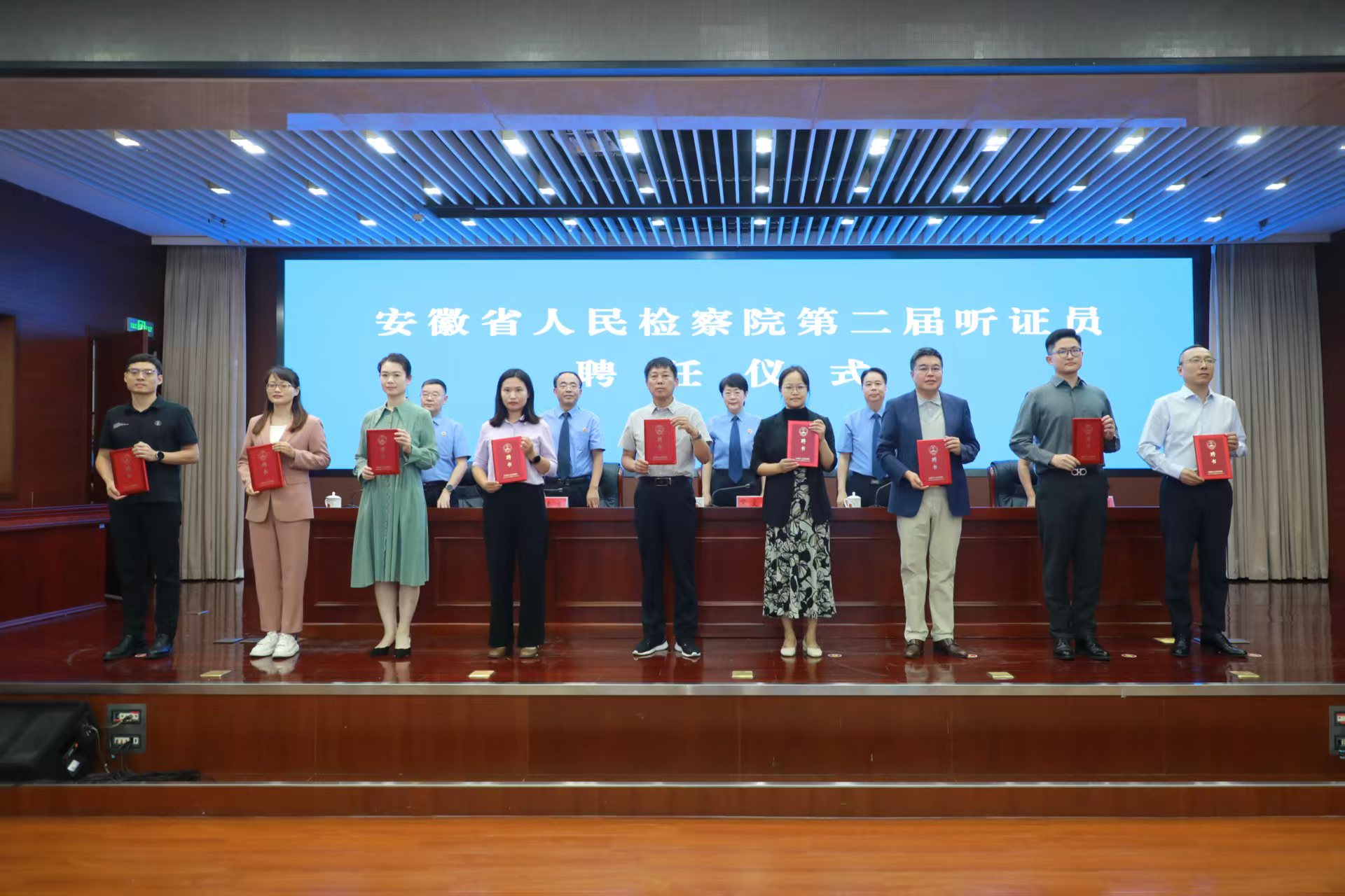 近日,安徽省人民检察院举行第二届听证员聘任仪式。省检察院党组书记、检察长宋文娟出席仪式并讲话,党组副书记、副检察长盛大友主持仪式。